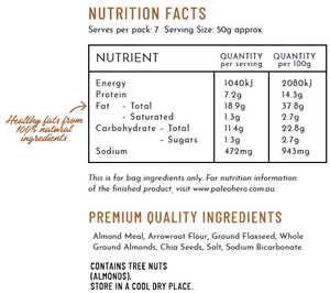 Made with a secret blend of nut flours, flaxseeds and chia - our bread mix provides you with a nutrient-packed loaf minus the unecessary carbs or gluten. At Paleo Hero we don't believe in using cheap or low nutrient products. It's why every Paleo Hero product is made with top-quality ingredients, including our bread mix. Unlike traditional breads, we leave out those wheat products that don't do your body any favours.