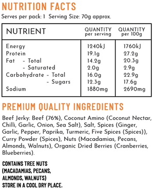 It's our excellent choice for a pre-workout protein boost but you can also enjoy it for an afternoon pick-me-up or even just a healthy enjoyable snack to have on hand throughout your day. Looking for something with a little extra spice? You can also purchase our Primal Jerky Mix - Spicy.